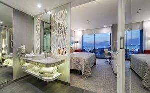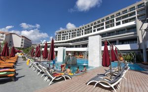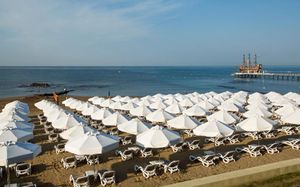 Отель The Sense De Luxe-All Inclusive с обслуживанием по системе «все включено» расположен на берегу моря в Сиде. К услугам гостей сад с открытым бассейном. На частном пляже отеля установлены бесплатные зонтики и шезлонги. В отеле можно поиграть в бильярд, настольный теннис и дартс, заняться водными видами спорта, посетить сауну, фитнес-центр, массажный кабинет и хаммам.