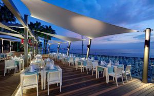 Рестораны a la carte/шведский стол:Итальянский, Турецкий и Рыбный. Часы работы ресторанов 19:00-21:00 Необходима предварительная резервация Возможно 1 бесплатное посещение одного из ресторанов (при проживании от 7 ночей)