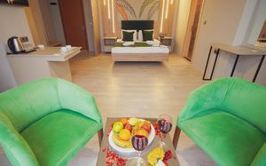 По приезду нас встретили на ресепшене и разместили по нашей просьбе на 3 часа раньше положенного времени, за что Фуркан бею и всему коллективу огромная благодарность !!! Номер наш находился на 9 этаже с видом на море. Комната очень большая с удобной планировкой. Уборка в номере была каждый день. Коллектив очень дружелюбный и внимательный.