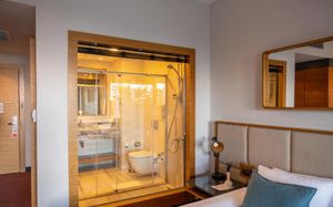 В числе удобств всех номеров — телевизор с плоским экраном, транслирующий спутниковые каналы, телефон, сейф, гладильные принадлежности, балкон и мини-бар. В собственной ванной комнате в распоряжении гостей душ, фен и тапочки.