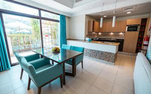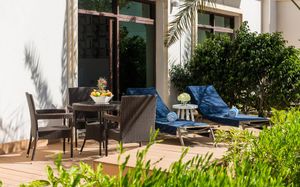 Гостям предлагается размещение в просторных люксах с 1–3 спальнями, полностью оборудованной кухней, изготовленными по индивидуальному заказу кроватями, телевизорами с плоским экраном и органическими туалетно-косметическими принадлежностями. В число удобств люксов с 1 спальней входит терраса площадью 76 кв. м на крыше с шезлонгами и обеденной зоной на открытом воздухе. Люксы с 2 спальнями расположены на первом этаже. Из их окон открывается вид на бассейн или собственный сад. К люксам с 1 и 3 спальнями можно подняться по лестнице.