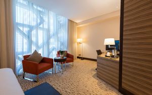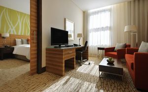 Отель Courtyard by Marriott World Trade Center, Abu Dhabi с бесплатным Wi-Fi на всей территории расположен в самом сердце делового района города Абу-Даби, неподалеку от целого ряда известных крупных деловых центров. От него легко добраться до знаменитого небоскреба Бурдж-Мохаммед-бин-Рашид, входящего в комплекс Всемирного торгового центра. В каждом номере обустроена рабочая зона. В числе стандартных удобств бесплатный высокоскоростной Wi-Fi, телевизор с плоским экраном и постельное белье класса люкс. В отделанной мрамором ванной комнате установлены ванна и душ. В планировку люксов входит отдельная гостиная. Гости смогут поплавать в открытом бассейне и заняться спортом в тренажерном зале. В отеле Courtyard by Marriott работают различные кафе и рестораны, включая ресторан The Bistro, в котором подают блюда интернациональной кухни. В кафе 5th Street можно заказать кофе и легкие закуски. В шаговой доступности от отеля находится базар и набережная Корниш. Сотрудники круглосуточной стойки регистрации помогут воспользоваться гладильными услугами и услугами химчистки. Отель Courtyard by Marriott World Trade Center, Abu Dhabi находится в 2,4 км от торгового центра Al Wahda и в 2,8 км от торгового центра Abu Dhabi. Расстояние до международного аэропорта Абу-Даби составляет 30 км.