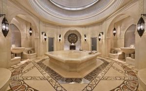 На территории отеля гости могут посетить 2 больших бассейна, один из которых с горками и аттракционом «ленивая река», и спа-центр с массажными кабинетами, полным спектром роскошных процедур для тела, а также марокканским хаммамом для расслабляющих ритуалов. В отеле Emirates Palace есть фитнес-центр, удобства для занятий водными видами спорта, аквапарк, детский дворец, так что радостные юные гости будут умолять своих родителей остаться.