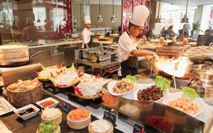 На территории отеля есть 4 ресторана и 4 бара, cuiscene