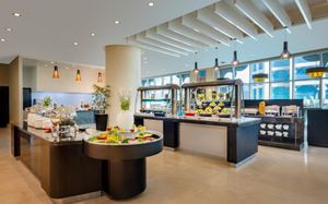 Dining options include signature dishes and classic favorites at Al Wahda Restaurant’s international buffet, eco-friendly delights at 90 Centigrade Café, signature burgers at Porters English Pub, and relaxing evenings at 31 Bar Lounge. Vegetarian, halal, gluten-free, yogi, healthy, and kid-friendly menu options are also available.