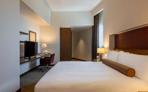 Seamlessly connected to Al Wahda Mall, Abu Dhabi’s premier shopping and entertainment destination with over 350 renowned brands, the hotel also provides a prime location just steps away from the Abu Dhabi Central Bus Station, ensuring effortless connectivity to the capital's main district and other Emirates, including Dubai. Guests can enjoy a complimentary daily shuttle service to the beach and key tourist attractions, enhancing convenience throughout their stay.