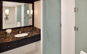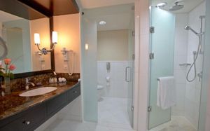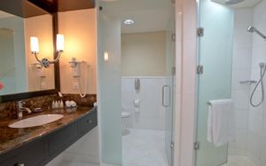 Звуковые подсказки Тактильные знаки Подсказки на языке Брайля Шнур/кнопка вызова помощи в ванной Низкая раковина Высокий туалет Туалет с поручнями Подходит для гостей в инвалидных креслах