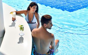 Открытый бассейн с пресной водой, часы работы с 07:00-20:00 Открытый бассейн с пресной водой, Infinity pool в Bayshore Beach Club часы работы с 08:00-20:00 Водные горки для детей
