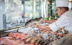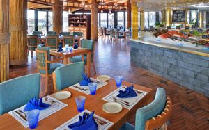 HB: завтрак "шведский стол" и обед (или ужин) "шведский стол" в ресторане Selections FB: завтрак «шведский стол», обед «шведский стол» и ужин «шведский стол» в ресторане Selections Standard All Inclusive: начинается с обеда после регистрации гостя и заканчивается завтраком в 10:30 до отъезда гостя. Завтрак "шведский стол", обед "шведский стол" и ужин "шведский стол" в ресторане Selections Рестораны и бары только для напитков: The Bayshore, Aquarius, Piano Lounge и Selections: напитки во время еды. Напитки начинают подавать с 11:00 до 23:00: безалкогольные напитки, кофе, чай, вина и пиво, спиртные напитки: водка, виски, ром, джин и бренди Premium All Inclusive: начинается с обеда после регистрации гостя и заканчивается завтраком в 10:30 до отъезда гостя. Завтрак (шведский стол) в ресторане Selections. Обед и ужин будут по выбору гостя из нижеперечисленных ресторанов с комплексным меню: Byblos sur Mer, Belgian Café, The Bayshore Bar, The Fishmarket, Cho Gao Marina Walk, Chamas restaurant, Selections: "шведский стол" Рестораны и бары только для напитков: Piano Lounge 12:00-23:00 Cho Gao 12:00-23:00 Belgian Cafe 16:00-23:00 Byblos Lounge 12:30-23:00 Fishmarket 12:30-23:00 Aquarius 11:00-18:30 Bayshore 11:00-18:30 Selections 12:30-22:30 Напитки начинают подавать с 11:00 до 23:00: избранные безалкогольные напитки, кофе, чай, вина и пиво, местные спиртные напитки: водка, виски, ром, джин и бренди Платно:room service, мини- бар, меню а ля карт Отель оставляет за собой право вносить поправки или изменять формулу «Premium All Inclusive» All Inclusive Soft: безалкогольные напитки (вода, кофе, чай, сок). Напитки подаются во время еды All Inclusive Dine Around: гости смогут позавтракать в ресторане Selections. Обед и ужин по выбору гостей будут подаваться в одном из следующих ресторанов-лауреатов с фиксированным меню: Byblos sur Mer Belgian Café The Bayshore Bar Aquarius The Fishmarket Cho Gao Marina Walk (только ужин с четверга по субботу) Chamas restaurant (только ужин с понедельника по субботу) Варианты: шведский стол Рестораны и бары (только напитки): Byblos sur Mer: 12:30-23:00 Belgian Café: 12:00-23:00 The Bayshore: 11:00-18:30 Aquarius: 11:00-18:30 Piano Lounge: 12:00-23:00 The Fishmarket: 12:30-23:00 Cho Gao Marina Walk: 16:00-23:00 (с четверга по субботу) Chamas: подача напитков во время еды Selections: подача напитков во время еды