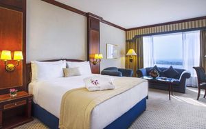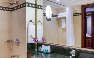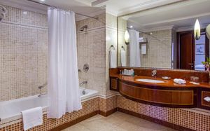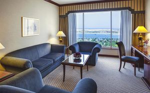 Номера и люксы отеля Corniche Abu Dhabi обставлены деревянной мебелью. Все просторные номера и люксы с французскими окнами с видом на сад или залив оснащены телевизором с плоским экраном.