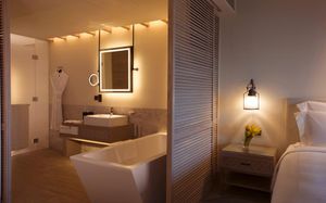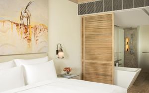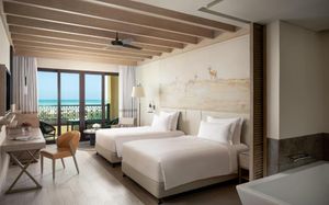 В отеле 327 роскошных номеров и люксов и 13 вилл на пляже с современным элегантным декором. К услугам гостей номера разных категорий, в том числе представительские клубные номера Rotana с дополнительными привилегиями и индивидуальным сервисом.