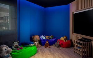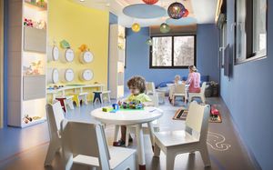 Детская кровать, детские стульчики в ресторане, игровая площадка, бассейн, ...