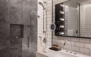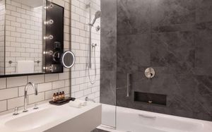 Звуковые подсказки Тактильные знаки Шнур/кнопка вызова помощи в ванной Низкая раковина Туалет с поручнями Подходит для гостей в инвалидных креслах