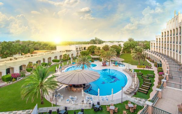 Situated in the center of Al Ain, the hotel overlooks a green park. It features a large outdoor pool with sun-lounger terrace and offers elegant accommodations with furnished balconies and mountain views.