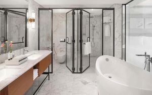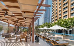 Гости отеля с 5 звездами Kempinski Central Avenue Dubai могут воспользоваться сауной и открытым бассейном.