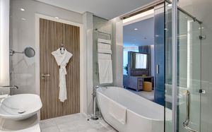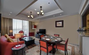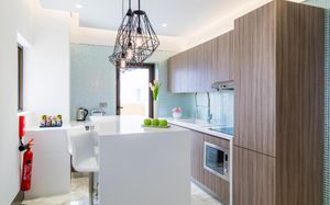 Просторные люксы и апартаменты отеля Arjaan by Rotana оформлены в современном мавританском стиле. С балкона открывается вид на живописный городской пейзаж и море. Гости могут отдохнуть в просторной гостиной с ЖК-телевизором. В числе удобств — хорошо оборудованная кухня с духовкой, плитой и микроволновой печью.