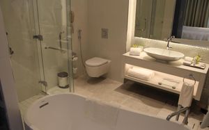 Туалетная бумага Полотенца Биде Ванна или душ Тапочки Собственная ванная комната Туалет Бесплатные туалетно-косметические принадлежности Халат Фен Ванна Душ