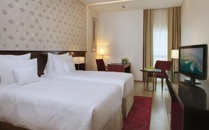 Кондиционер очень шумный. Пришлось на ночь выключить и открыть окно. Очень жаркое одеяло и что-то не то с составом постельного белья = спать было не комфортно. Вопрос с кондиционером и одеялом стоило решить звонком на ресепшн. Но я так устала с дороги, что не хватило сил это сделать. Возможно, ситуацию бы исправили. Халат и тапочки по запросу, в номере их нет. Опять же стоило позвонить и попросить. Сауна и хамам включаются по запросу и нагреваются за минут 20. Неожиданностью стала заблокированная дверь ровно в 12.00. Спустилась за чемоданом из бассейна в 12.10 и не смогла зайти в номер. Пришлось просить проходящего служащего открыть дверь. Одним словом, для меня было слишком много вопросов, которые нужно дополнительно решать и просить отдельно. Надеюсь, зная эти нюансы, кому-то будет проще обеспечить себе комфорт.