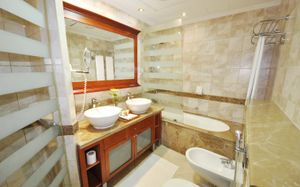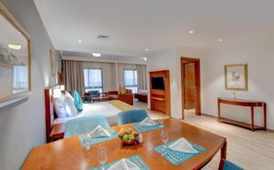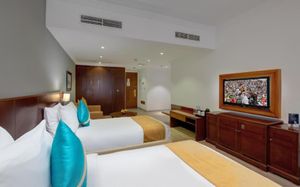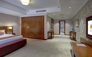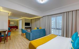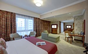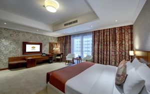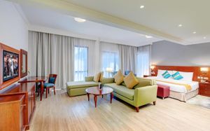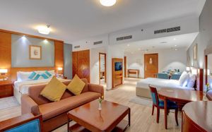 Situated midway between downtown Dubai and Dubai Marina, Donatello Hotel offers elegant rooms with an LCD TV. Facilities include a rooftop pool, a well-equipped gym. Free Wi-Fi is available in the suites. The air-conditioned rooms and suites of Donatello Hotel feature a modern interior and a spacious bathroom. The concierge can arrange desert safaris, excursions, and guided tours. The hotel also offers free internet access in all rooms. Donatello Hotel has two trendy restaurants, which serve local and international gourmet cuisine. The specialty View Lounge offers greek cuisine. Guests can also order à la carte dishes through room service. Donatello Hotel is a 10-minute walk from the Mall of the Emirates & Ski Dubai. The Mall of Emirates Metro Stop is less than 500 metres from the hotel, and the Insurance Market Metro Station is 200 metres away.
