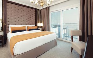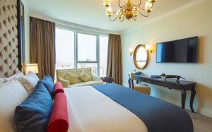 Отель Dukes The Palm, a Royal Hideaway расположен на острове Палм-Джумейра. В этом отеле созданы все условия, чтобы гости смогли почувствовать настоящую роскошь свободной жизни с оттенком английского шарма. Гости могут заняться различными водными видами спорта на пляже или отдохнуть возле бассейна «ленивая река». Отель Dukes The Palm, a Royal Hideaway насчитывает 279 роскошно обставленных номеров и 285 со вкусом меблированных апартаментов с обслуживанием, из окон которых открывается захватывающий вид на Персидский залив в обрамлении знаменитых очертаний района Дубай Марина. В числе удобств всех номеров и люксов телевизор с плоским экраном и спутниковыми каналами, принадлежности для чая/кофе, просторный шкаф для одежды и сейф. Гостям предоставляются халаты, тапочки и бесплатные туалетно-косметические принадлежности Floris. В отеле Dukes The Palm, a Royal Hideaway сервируют великолепные блюда британской кухни. В ресторане Great British (GBR) представлен прекрасный выбор блюд с настоящим британским характером. Ресторан GBR открыт в течение всего дня, из него открывается потрясающий вид на городской пейзаж района Дубай Марина. В баре Dukes готовят коктейли из лучших в мире марок мартини. В отеле работает хорошо оснащенный тренажерный зал с современным оборудованием. Он расположен на 15 этаже, из его французских окон открывается великолепный вид на район Дубай Марина. Также в отеле можно посетить превосходный парикмахерский салон. От отеля Dukes The Palm, a Royal Hideaway легко добраться до международных аэропортов Дубай (DXB) и Аль-Мактум (DWC), поездка до которых займет всего 30 минут. Торговый центр Mall of the Emirates находится в 20 минутах езды от отеля, а торговый центр Dubai Mall — в 30 минутах. До комплекса парков аттракционов Dubai Parks and Resorts можно также добраться за 30 минут.
