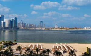 Роскошный 5-звездочный отель Fairmont The Palm с потрясающим видом расположен на территории собственного частного пляжа на острове Палм-Джумейра. К услугам гостей 8 бассейнов, а также 11 ресторанов и баров. В 8 км находится район Дубай Марина, а недавно открытый торговый центр Nakheel расположен в пешей доступности от жилья.