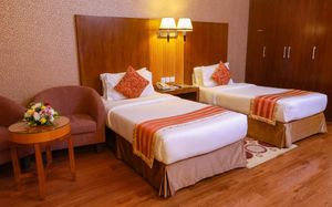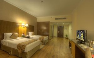 Старая, обшарпаная гостиница. Номера нуждаются в обновлении. Но самая жесть - прямо в гостинице на первом этаже ночной клуб, и из него музыка до 3-х часов ночи гремит на всю гостиницу. Ну и все проститутки и похожий контингент с Дейры там тусят в сплошном облаке табачного и кальянного дыма:). так что, если вы не собираете отдыхать в этом клубе до 3-х ночи, то имейте в виду, что поспать у вас тоже не получится