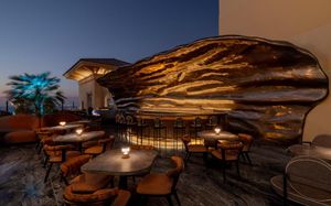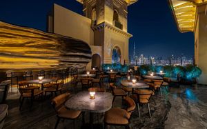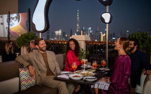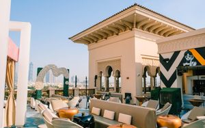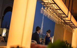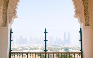 Вид на Персидский залив с одной стороны и Бурдж-Халифа и центр города с другой.