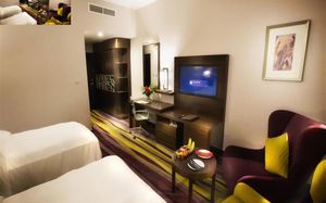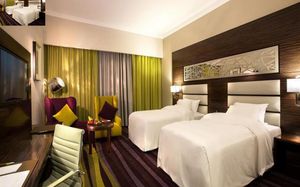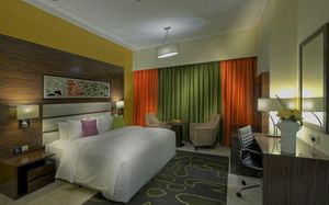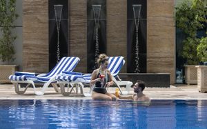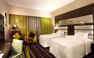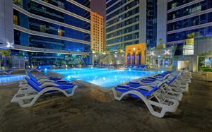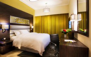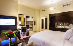 Experience exceptional hospitality and world-class service at the fully renovated Vintage Grand Hotel by Marriott, Dubai Elegant Accommodations: Vintage Grand Hotel in Dubai offers a 5-star experience with spa facilities, a swimming pool, sauna, fitness center, sun terrace, restaurant, bar, and free WiFi. Comfortable Amenities: Guests enjoy private check-in and check-out, paid shuttle service, beauty services, steam room, wellness packages, fitness room, hot tub, 24-hour front desk, concierge service, kids' club, daily housekeeping, pool bar, business area, outdoor seating, hairdresser, family rooms, live music, full-day security, breakfast in the room, express check-in and check-out, room service, car hire, tour desk, and luggage storage. Dining Options: The family-friendly restaurant serves Mediterranean, Asian, and international cuisines with brunch, lunch, dinner, high tea, and cocktails. Breakfast includes continental, buffet, full English/Irish, vegetarian, halal, gluten-free, local specialties, warm dishes, juice, fresh pastries, pancakes, cheese, fruits. Prime Location: Located 14 mi from Al Maktoum International Airport, the hotel is surrounded by some of Dubai’s most popular attractions. Nearby highlights include Expo City (11.7 mi), Dubai Autodrome (5.2 mi), Dubai Hills Mall (5 mi), IMG Worlds of Adventure, Global Village, and Miracle Garden. It is also just a 5-minute walk from City Centre Me’aisem and a short drive to Dubai Sports City, Jumeirah Golf Estates, Jumeirah Village Circle, and Jumeirah Village Triangle. Guests can also easily access Dubai Marina, JBR, and Mall of the Emirates—making the hotel ideal for both leisure and business travelers.