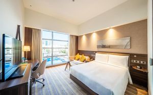 Hampton by Hilton Dubai Airport - это новый, современный отель, расположенный недалеко от международного аэропорта Дубая. Начните каждый день с бесплатного горячего завтрака, наслаждайтесь общественными зонами в теплом и гостеприимном лобби, позанимайтесь в полностью оборудованном фитнес-центре или искупайтесь в открытом бассейне с регулируемой температурой.