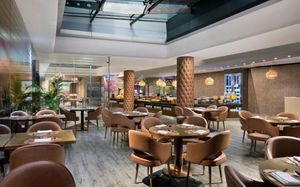 Mövenpick Dubai Creek offers three dining venues, including breakfast at Great Oaks, authentic Italian cuisine at Buonissimo Italian with wood-fired pizzas and fresh pastas, and the Skyview Pool Bar serving refreshing drinks and light bites with panoramic views of Dubai Creek and the city skyline.