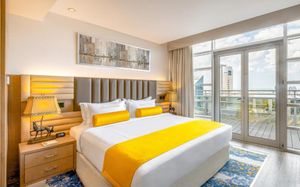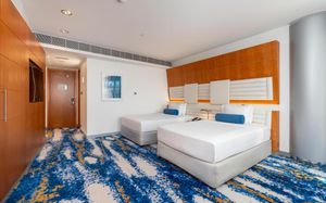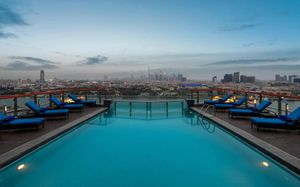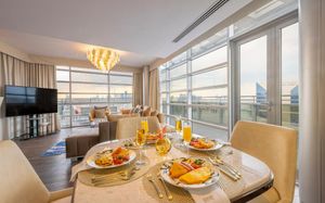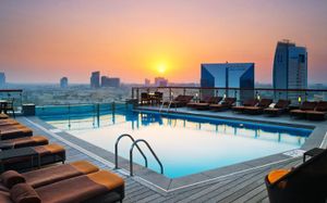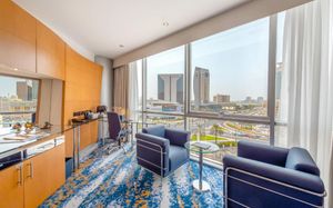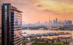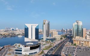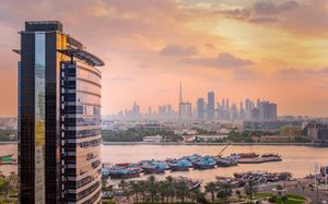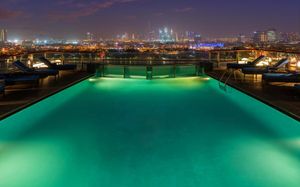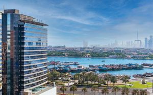 Featuring a rooftop pool and bar with panoramic views of Mövenpick Dubai Creek, city and Arabian Sea, the 5-star Mövenpick Dubai Creek is located on the busy Dubai Creek. Its a 10 minute drive to many of Dubai's attractions such as Gold & textile market as well as to Dubai International Airport.