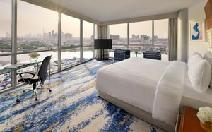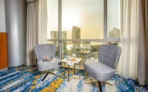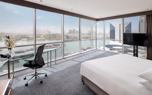 Mövenpick Dubai Creek's rooms feature contemporary decor and marble bathrooms. All rooms are equipped with a Serenity Bed and deluxe bedding. The rooms are modern with flat screen TV and offer creek or city skyline views.