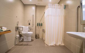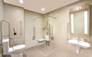 Звуковые подсказки Шнур/кнопка вызова помощи в ванной Низкая раковина Высокий туалет Туалет с поручнями Подходит для гостей в инвалидных креслах Лифт для доступа к верхним этажам