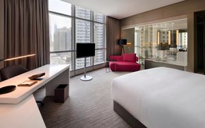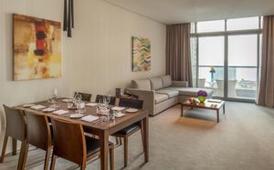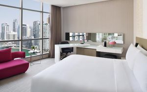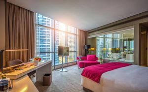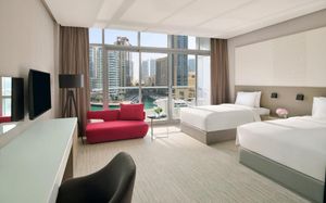Отель InterContinental Dubai Marina с живописным видом на гавань расположен в самом центре района Дубай-Марина. К услугам гостей открытый бассейн, а также 6 ресторанов и баров. Из нашего отеля открывается потрясающий вид на набережную. Совсем рядом расположены пляж Джумейра, Дубайский трамвай и выставочный комплекс «Экспо-Сити Дубай». Это идеальное место для фестиваля Gulfood 2026, выставки Arab Health и других крупных мероприятий. Гостей ждут пятничные бранчи, тематические вечерние обеды, напитка в баре на крыше, бассейн, спа-центр, студия пилатеса и современные конференц-залы в самом центре района Дубай Марина. В распоряжении гостей 328 номеров, люксов и резиденций, в которых современное оформление отлично сочетается с оригинальной архитектурой. В числе удобств — 40-дюймовый смарт-телевизор с плоским экраном, бесплатный Wi-Fi и рабочий стол. Гости также могут воспользоваться принадлежностями для чая/кофе. Ресторан Accents наполнен ароматами и вкусами со всего мира. Для вечернего отдыха в отеле обустроен лаундж Urban Shisha. Любителям джина стоит посетить уютный бар Ginter. Белые стены, мебель в стиле ретро, мягкая музыка и захватывающий вид на гавань — идеальное место для встреч с друзьями и отдыха. В зимний период бар Rex на крыше привносит в атмосферу района Дубай Марина дух настоящей Италии. В спа-центре с 6 процедурными кабинетами предлагается широкий спектр различных видов массажа разной интенсивности. Гости могут позаниматься спортом в фитнес-центре или поплавать в открытом бассейне. Кроме того, гости отеля могут посещать 3 особых заведения-партнера — PAPAS, аутентичный итальянский ресторан и клуб-ресторан с живыми выступлениями The Groove House. Перед отелем InterContinental Dubai Marina на набережной Дубай-Марина работает торговый центр Dubai Marina. Расстояние до торгового центра Mall of the Emirates составляет 10 км. Поездка на автомобиле до аквапарка Aquaventure занимает 20 минут.