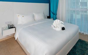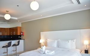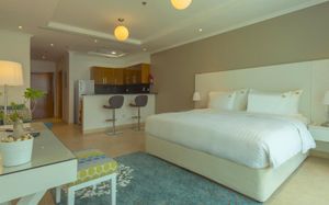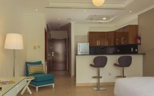 Начиталась отзывов и очень переживала. Что хочу сказать просто замечательный отель, ребята, очень достойный! Все кто боится или сомневается- нечего бояться! В номере все есть- холодильник, мини кухня, микроволновка и пр, халаты, тапочки, фен, утюг и доска. Да более, чем достаточно! Для меня самое главное всегда - это постельное и полотенца- они хрустят от чистоты и белизны, как новые. Кровать очень комфортная и удобная, спалось невероятно хорошо! Температура в номере очень комфортная даже без включенного кондиционера, возможно, из-за системы общего кондиционирования. Горячая вода всегда все супер. Расположение лучше быть не может- все рядом, залив за домом, супермаркет напротив, до метро только пешком минут 10(около 1км). Рядом с отелем прекрасный ресторан узбекской кухни, где ну очень вкусно готовят, цены у них тоже очень приятные.