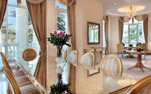 На территории курортного отеля площадью 2 га раскинулись пышные сады. В распоряжении гостей частный пляж с золотистым песком, где можно понежиться на солнце, любуясь городом. Люксы, пентхаусы и виллы с несколькими спальнями спроектированы так, чтобы обеспечить максимальный комфорт. В числе их удобств — собственные ванные комнаты, отдельные обеденная и гостиная зоны, полностью оборудованные кухни и собственные балконы. В некоторых люксах можно отдохнуть в собственном бассейне и саду, а в определенных пентхаусах установлены роскошные гидромассажные ванны.