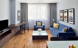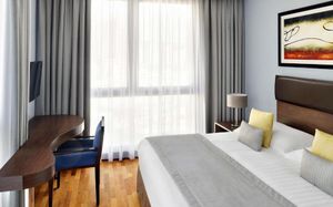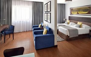 К услугам гостей первоклассного апарт-отеля Mövenpick Al Mamzar полностью оборудованные современные номера и апартаменты с бесплатным Wi-Fi, а также ресторан интернациональной кухни, открытый бассейн и фитнес-центр. В 15 минутах ходьбы расположен торговый центр Century. В номерах и апартаментах апарт-отеля Mövenpick Al Mamzar постелен деревянный пол и установлен телевизор с плоским экраном. В каждом люксе обустроена кухня или мини-кухня, обеденная зона и собственная ванная комната с бесплатными туалетно-косметическими принадлежностями. В ресторане отеля подают завтрак «шведский стол» и блюда по меню. Гости могут воспользоваться круглосуточной услугой доставкой еды и напитков в номер. Гостям предоставляется ежедневный трансфер до пляжа Аль-Мамзар и торгового центра Deira City Centre. В распоряжении гостей бесплатная собственная парковка. Поездка на автомобиле до свободной экономической зоны аэропорта Дубай занимает 5 минут. Отель находится в 10 минутах езды от международного аэропорта Дубай, района Дейра и залива Дубай-Крик, от которого удобно добираться до шоссе шейха Зайда. До торгового центра Dubai Mall и Всемирного торгового центра можно доехать за 20 минут, а до станции метро — дойти за 10 минут.