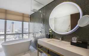 Movenpick Jumeirah Village Triangle — это отель в городе Дубай, в 7,4 км от такой достопримечательности, как Гольф-поле Montgomerie в Дубае. Среди удобств — фитнес-центр, ресторан, оздоровительный и спа-центр и бесплатная частная парковка. Из окон отеля с 5 звездами открывается вид на город. Гости могут воспользоваться открытым бассейном. Гости могут обратиться к сотрудникам круглосуточной стойки регистрации, воспользоваться трансфером от/до аэропорта или доставкой еды и напитков, а также подключиться к бесплатному Wi-Fi на всей территории.