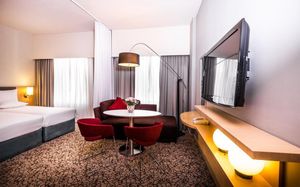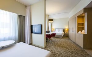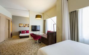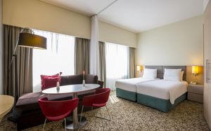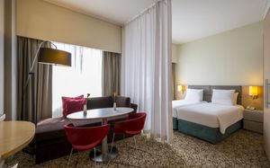 Дизайн-отель Novotel Suites Mall Avenue с открытым бассейном на крыше расположен рядом с торговым центром Mall of the Emirates и горнолыжным комплексом Ski Dubai. К услугам гостей — хорошо оборудованный тренажерный зал и бесплатная частная парковка. Номера отеля Novotel Suites Mall Avenue с просторной гостиной зоной обставлены современной мебелью. В числе стандартных удобств — телевизор с плоским экраном, собственная ванная комната и мини-бар. Желающие могут отдохнуть в библиотеке отеля. Также в распоряжении гостей рестораны, работающие в течение всего дня, и круглосуточная кондитерская. Станция метро Mall of the Emirates расположена в 500 метрах от отеля Novotel Suites Mall Avenue, а аквапарк Wild Wadi находится в 10 минутах езды. Бесплатный трансфер до пляжа Кайт-Бич Бесплатный трансфер до пляжа по пятницам и субботам | Только по понедельникам и средам.