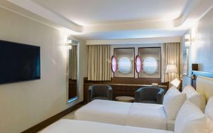 Плавучий отель Queen Elizabeth 2 расположен в Дубае Мина Рашид, в непосредственной близости от некоторых самых популярных достопримечательностей Дубая, включая Бурдж-Халифу, Торговый центр Дубая и Всемирный торговый центр Дубая. Всего в нескольких минутах езды на автомобиле вдоль побережья находятся некоторые из самых популярных точек города, включая пляж La Mer, пляжный ресторан, Boxpark, городской торговый и ресторанный комплекс, Gold Souk, Dubai Creek и музей Etihad.