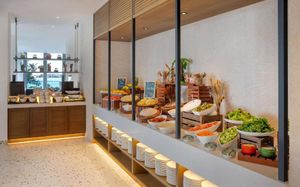 Гостям предлагается завтрак «шведский стол», континентальный завтрак или халяльный завтрак. При Radisson Beach Resort Palm Jumeirah работает ресторан, где подают блюда мексиканской кухни, морепродукты и блюда техасско-мексиканской кухни. Гости могут попросить приготовить вегетарианские, безлактозные и халяльные блюда.