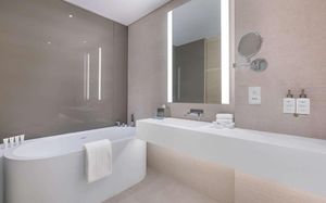 В Radisson Beach Resort Palm Jumeirah в каждом номере имеется кондиционер, телевизор с плоским экраном с кабельными каналами и сейф. Среди прочих удобств — гостиная зона и собственная ванная комната с душем, бесплатными туалетно-косметическими принадлежностями и феном. Гостям Radisson Beach Resort Palm Jumeirah предоставляются постельное белье и полотенца.