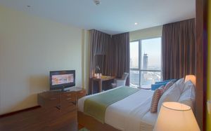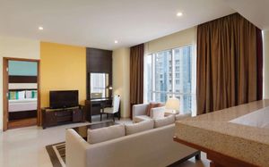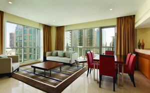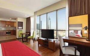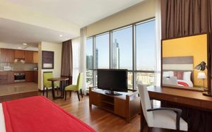 Отель Ramada Downtown Dubai находится в деловом центре Дубаи, всего в 5 минутах ходьбы от крупнейшего в регионе торгового центра Dubai Mall и рынка Сук Аль-Бахар, в 25 минутах езды от аэропорта. Из номеров открывается великолепный вид на музыкальный фонтан Дубаи и на Бурдж-Халифа — самое высокое здание в мире!