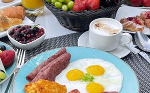 На территории отеля есть 2 ресторана, aura - buffet и à la carte на завтрак...