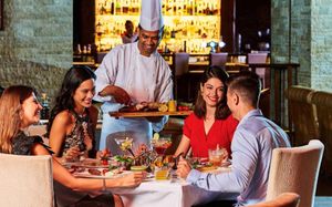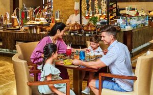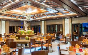 Рестораны a la carte/шведский стол:Hong Long, паназиатская кухня, 18:30–23:00 Porterhouse, стейки и гриль, 18:30–23:00 Moana, морепродукты, обед: 12:30–15:00 (только сб и вс), ужин: 18:30–23:00 The World Eatery, интернациональная кухня, обед: 12:30–15:00, ужин «шведский стол»: 18:30–22:30 Maui, салаты/паста/пицца/сэндвичи, 12:00–18:00 Zoya by Maui, индийская кухня, 19:00–23:00 Laguna Beach Taverna, греческая средиземноморская кухня, 12:00–23:00
