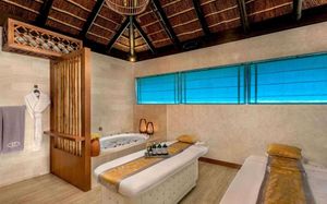 Sofitel SPA с L'Occitane (16+) Часы работы: ежедневно с 10:00 до 21:00 28 процедурных кабинетов, 6 крытых и открытых бассейнов, от гидротерапевтических бассейнов до спокойного пейзажного бассейна исключительно для взрослых. Зоны отдыха разделены по половому признаку и включают хаммам, паровые бани, сауны, ледяные фонтаны