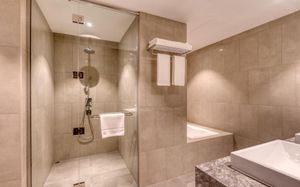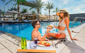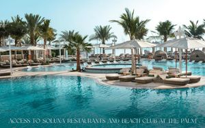 Наслаждайтесь эксклюзивным, легким доступом к динамичным городским пейзажам и безмятежным пляжным отдыхом, гарантируя, что ваши впечатления плавно перейдут от яркой общественной жизни к спокойному отдыху на знаменитом острове Palm Jumeirah, до которого можно быстро добраться на шаттле.