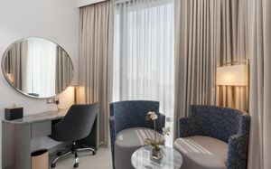 Добро пожаловать в городской ретрит с 491 номером в The First Collection at Jumeirah Village Circle. Расположенный недалеко от пристани для яхт и культурных жемчужин города, отель обещает не просто пребывание, но и захватывающий опыт, который органично сочетает энергичную атмосферу города со спокойным отдыхом на пляже в ресторанах Soluna и пляжном клубе The Palm.