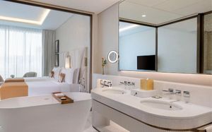 Отель The St. Regis Dubai, The Palm известен своими традициями, изысканной кухней и индивидуальным подходом к обслуживанию. К услугам гостей 264 роскошных номера и 26 элегантных люксов, в которых создана атмосфера чрезвычайного комфорта. Из окон от пола до потолка открывается панорамный вид на остров Палм-Джумейра, Персидский залив и городской пейзаж Дубая.