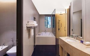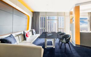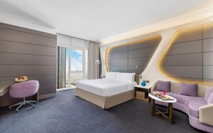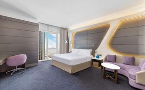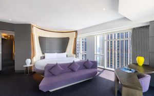 33-этажный отель V Hotel Dubai, Curio Collection by Hilton расположен высоко над оживленной улицей Шейх Заед Роуд и водным каналом Дубая, откуда открывается панорамный вид на Дубай. К услугам гостей 2 ресторана, 1 лаундж и 1 бар у бассейна, а также бесплатный Wi-Fi на всей территории. Все комнаты предлагают высокотехнологичны. Просторные номера с удобными креслами и телевизорами с плоским экраном и спутниковыми каналами.